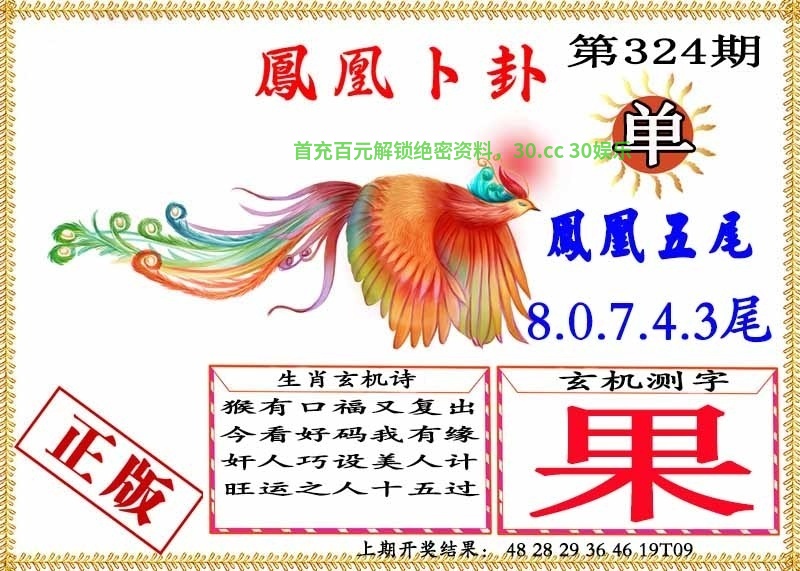 324期:玄机字【果】 玄机七肖:兔龙鼠羊马猪虎 卜卦单双:单数 |
